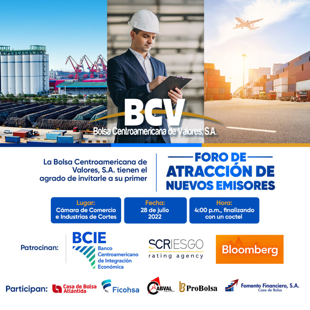 La Bolsa Centroamericana de Valores, S.A. realizará un Foro de Atracción para nuevos Emisores el día 28 de Julio en la ciudad de San Pedro Sula.